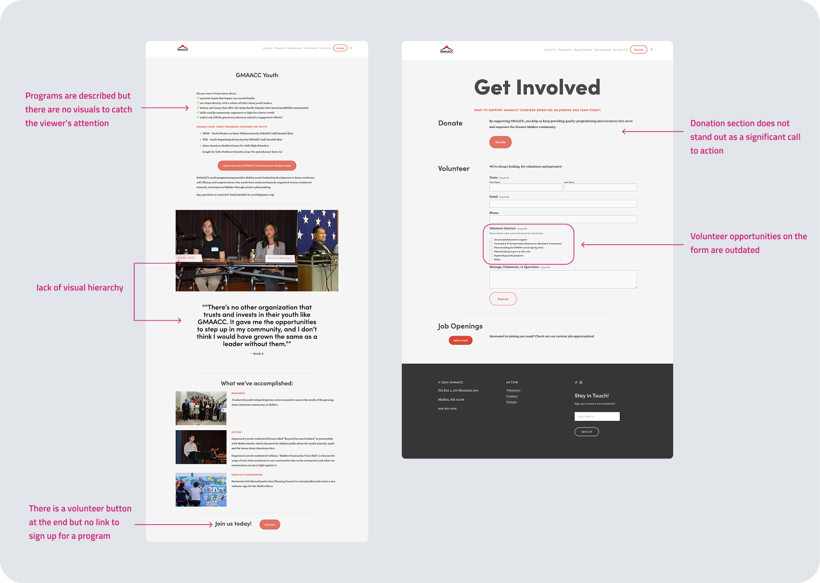 No streamlined pathways for volunteering or getting involved in programs